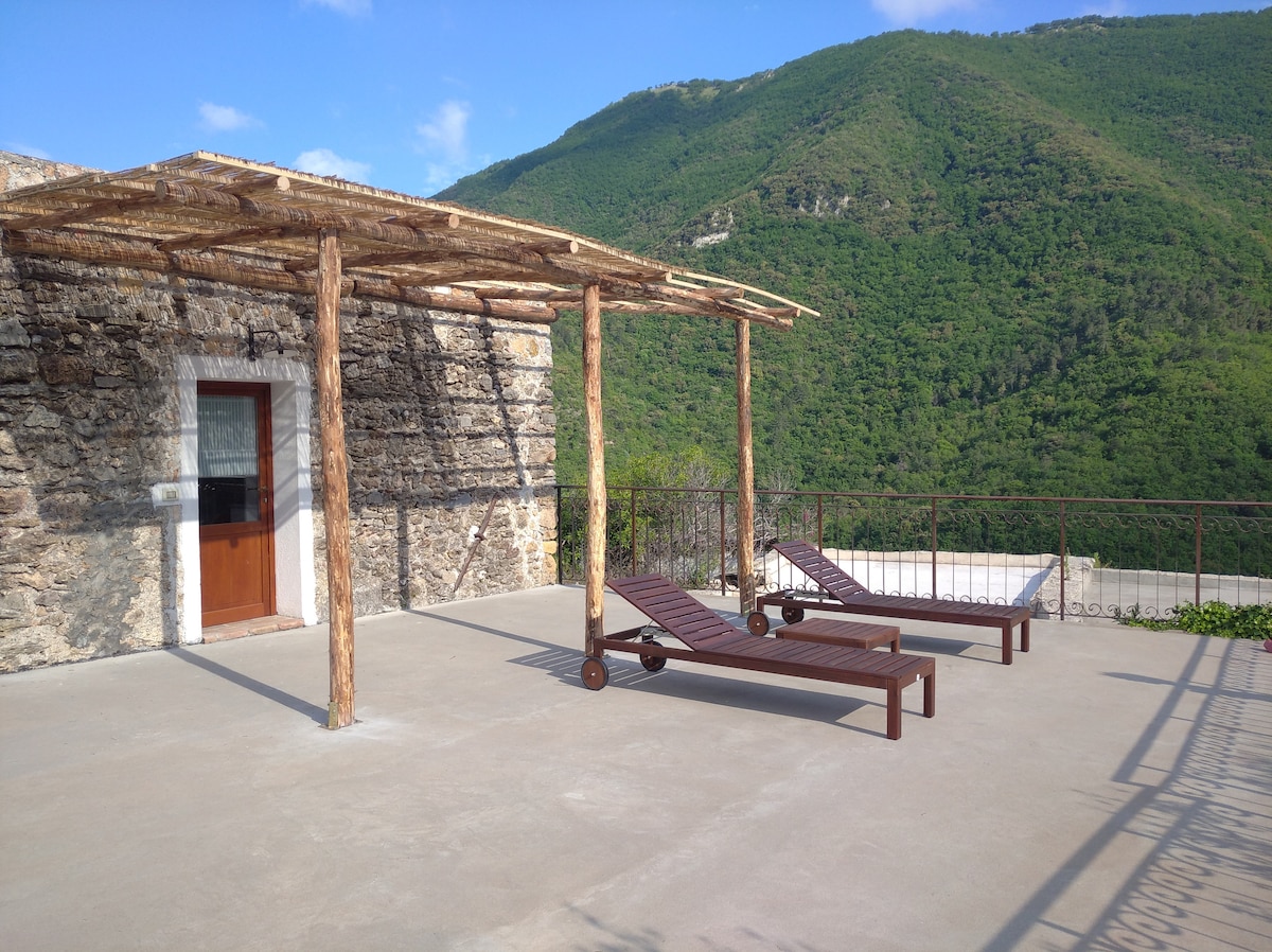 CASA VAL NEVA 🌞 • Kamnita vila s površino 240 m2 • 100 m2 velika panoramska strešna terasa s pečico za pico • Sredi gora, 30 minut vožnje do plaže • 10 minut do reke z naravnimi bazeni • 5 dvoposteljnih spalnic, 2 kopalnici • dnevna soba, jedilnica in druga terasa • Zadnja hiša na poti z veliko zasebnosti in miru • Sladka vaška restavracija in trgovina v 5 minutah hoje (s svežimi zvitki in focaccio vsako jutro) • Pomembno: do hiše lahko dostopate le peš (približno 300 m od parkirišča)