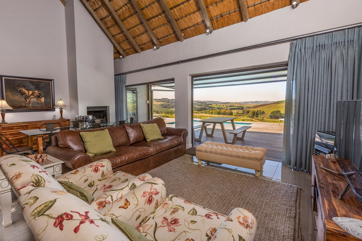 Čudovita hiška na deželi se nahaja med osupljivimi hribi doline Dargle. S pogledom na 3 mirne jezu, valovite pašnike in avtohtoni gozd. Na poljih so stoka in konji, obilica ptičjega življenja, v katerem lahko uživate, in spokojnost. To je popoln kraj, kjer si lahko povrnete energijo, medtem ko pobegnete od mestnega življenja, in s sosesko Midlands Meander na našem pragu, kjer ste lahko zaposleni ali tako tihi, kot se odločite. Kmetija je zdaj v celoti brez elektrike Eskom, zato je odstranjevanje bremena daljni spomini.