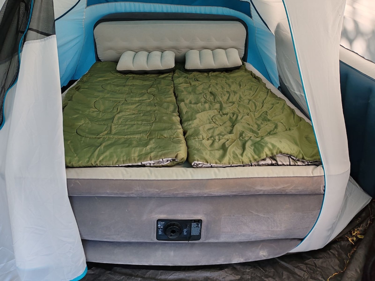 Experience the magic of beachside camping with comfort and nature! Stay in a cozy tent set up next to our caravan in a vibrant, well-equipped campsite just steps from the sea and a beautiful river, perfect for fishing, relaxing, and reconnecting with nature. Free Wi-Fi and parking A scenic river nearby, ideal for fishing and peaceful walks Wake up to the sound of the sea, enjoy a coffee under the sun, and spend your days surfing, fishing, or exploring the coast.