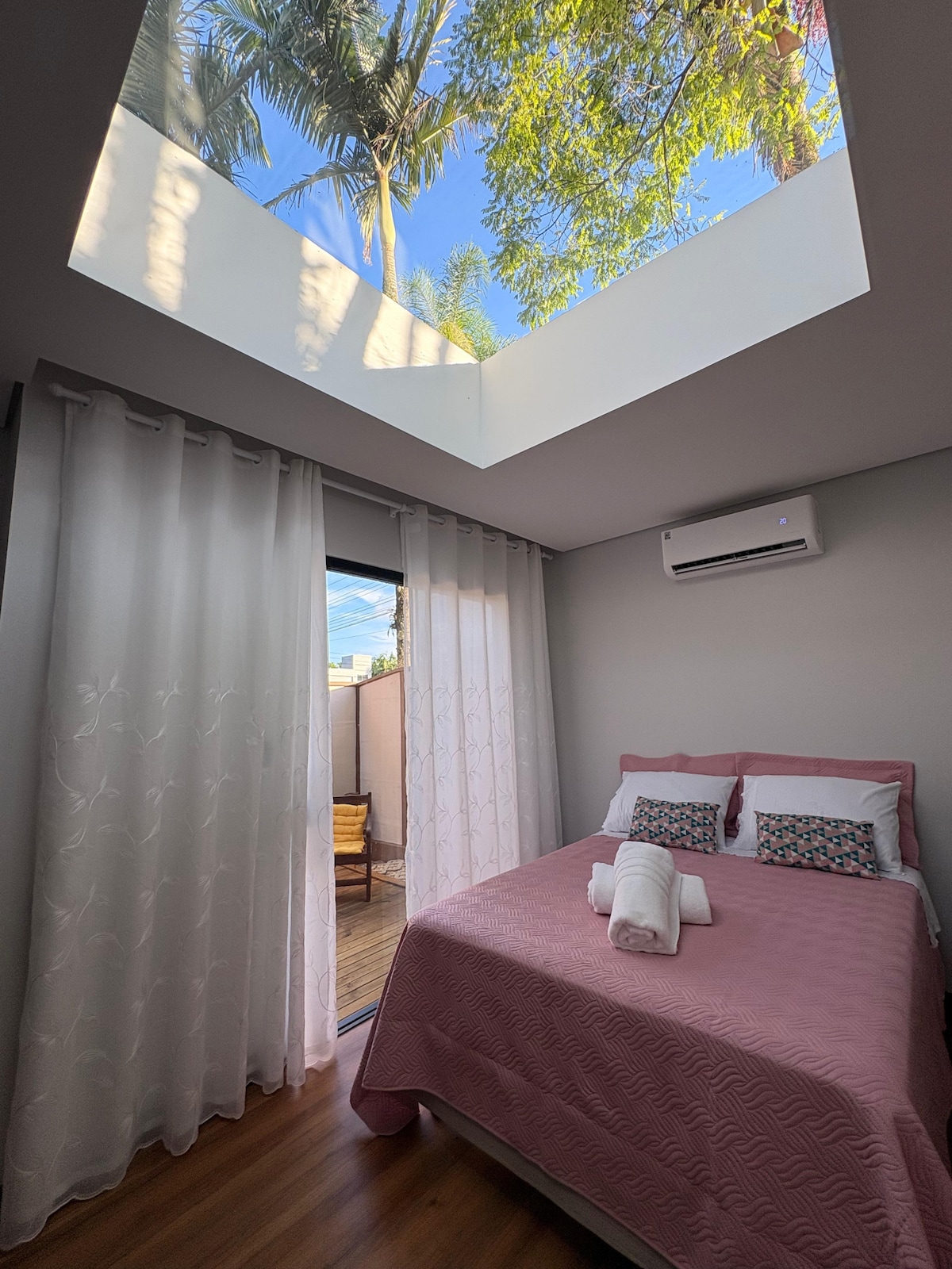 Suita v kraju Balneário Camboriú z: • 2,3 km od osrednje plaže; • klimatska naprava; • zakonska postelja; • Udobna kopalnica; • pogled na naravo; vas • Wi-Fi; • Zajtrk je na voljo do 10. ure; • razpoložljiv žar; • dvorišče s travo. Sprostite se v tej mirni nastanitvi. To bo prostor, ki si ga bomo delili z mano, mojim možem in mojimi hišnimi ljubljenčki. Z veseljem vas bomo sprejeli 🥰