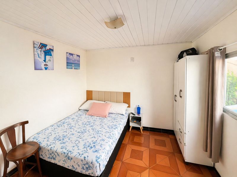 Casa térrea completa com entrada privativa de um dormitório, para casal e dois colchões de solteiro na sala, (será cobrado adicional na diária por pessoa). Cozinha completa com utensílios como: panelas, pratos, copos, talheres e eletrodomésticos. Churrasqueira a carvão. Área de serviço com tanque e maquina de lavar. Área externa com rede e mesa. Aceito pet. Sem garagem.