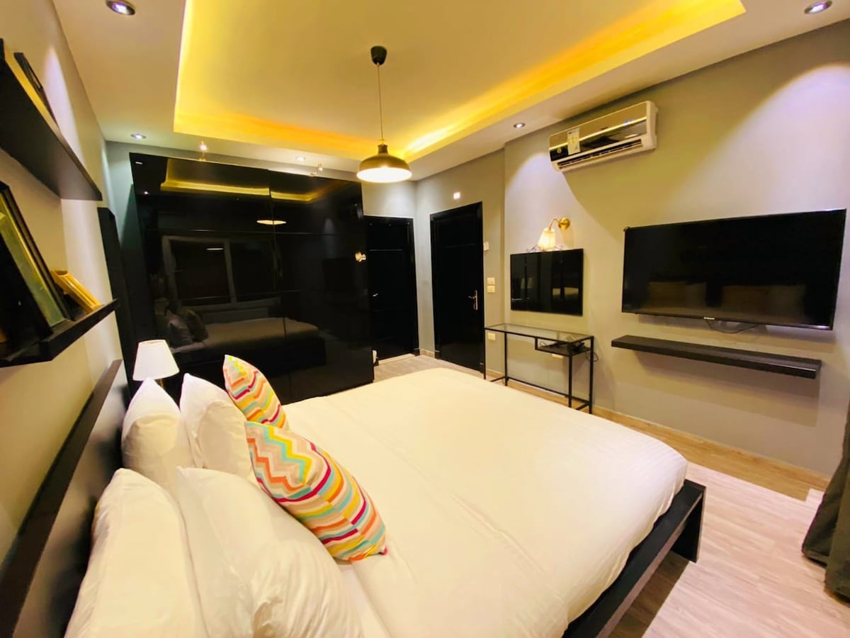 Sodobno dvoposteljno stanovanje z 2 kopalnicama s pogledom na znameniti most Abdoun. 24-urna varnost in obilica skupne opreme, vključno z bazenom, telovadnico, savno, parno, dvema vrtovima, kino sobo in sobo PlayStation. Prav tako je le nekaj minut stran od 4. kroga in kroga Abduna.