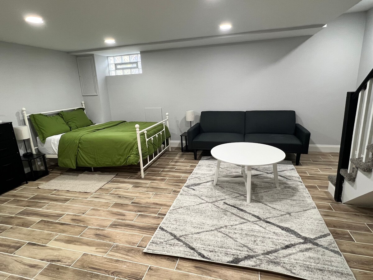 Sprejemanje pred kratkim posodobljenega zasebnega kletnega apartmaja s trendovsko dekoracijo in slogom. Enosobno mesto ponuja veliko več kot le to. V celoti boste lahko izkoristili odprto kuhinjo, popolnoma opremljeno udobno dnevno sobo, prostorno kopalnico z WC-jem, kotiček za zajtrk in po potrebi pralnico. Vsak par, delovni strokovnjak ali majhna družina / skupina prijateljev bi radi bivali tukaj. Da ne omenjam odlične lokacije, primerne za vse znamenitosti Baltimora. Na voljo je veliko parkirnih mest.