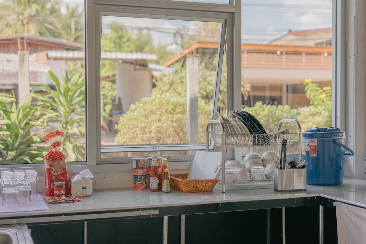 ที่นี่เป็นบ้านพักสไตล์ไม้เก่ารีโนเวทใหม่ ที่ยังเก็บรายละเอียดเสน่ห์เดิมๆ ไว้ครบ แต่เติมความโมเดิร์นแบบอบอุ่นเข้าเหมาะกับคนที่อยากมาพักผ่อนท่ามกลางธรรมชาติจริงๆ เปิดหน้าต่างมาก็เจอ วิวภูเขาหินปูนยักษ์ ตระหง่านอยู่ตรงหน้า เหมือนภาพวาดจากธรรมชาติ นอนบนเตียงนุ่มๆ แล้วมองวิวได้เลย ไม่ต้องขยับไปไหน อากาศดีทั้งเช้าและเย็น บางช่วงมีค้างคาวบินผ่านตรงกระจกบานใหญ่เลย