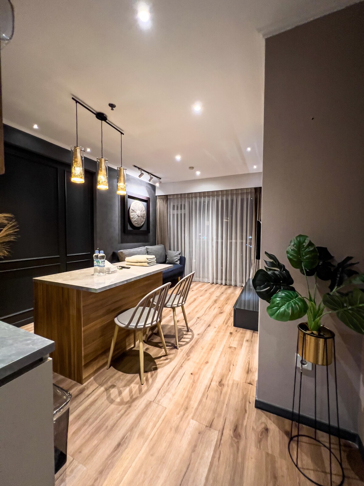 📍Marbella Suites Dago (zasebni stolp) Stanovanje, vredno insta, z 2(dvema) ločenima spalnicama in raztegljivim kavčem v dnevni sobi, udobno za največ 5(pet) odraslih. Opremljen je z 2 kopalnicama, pametno televizijo, pripravljeno za Netflix, internetnim Wi-Fi-jem, kuhinjo s štedilnikom, hladilnikom, avtomatom za vodo, polno jedilno opremo in tako naprej.