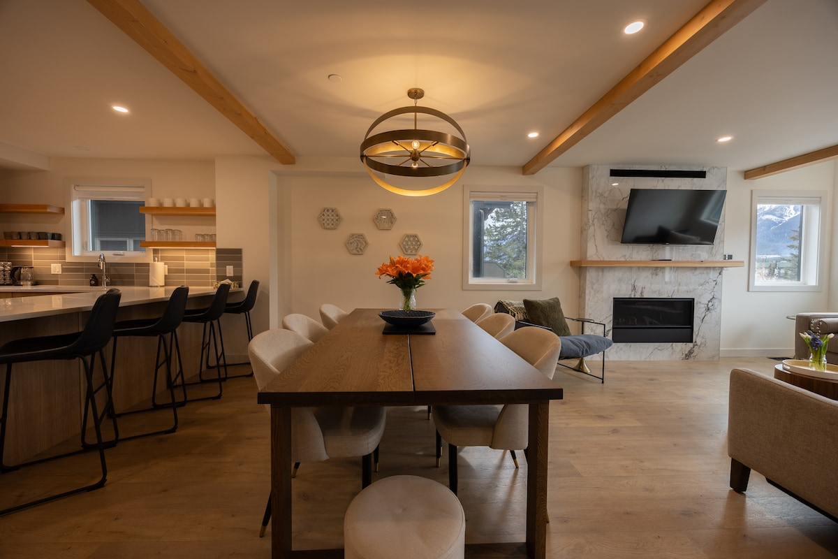 Naša razkošna vrstna hiša, ki se nahaja v živahnem srcu Canmora, ni le prenočišče, ampak tudi vstop v ustvarjanje trajnih spominov. Idealno za smučarske ekipe, družine in raziskovalce, smo le nekaj trenutkov od živahnih restavracij in sijajev Banffa. Naša filozofija je, da ponudimo več kot le razkošje - gre za zagotavljanje nepozabnih doživetij, kjer se pustolovščina sreča s sprostitvijo, zaradi česar je vsako bivanje nepozabno. Vabimo vas, da naše prenočišče postane ozadje za vaše dragocene trenutke.