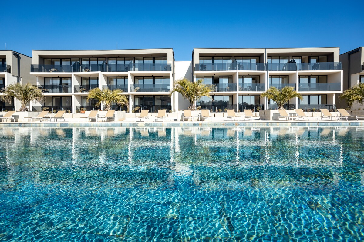 Poolside Family Apartment + Balcony