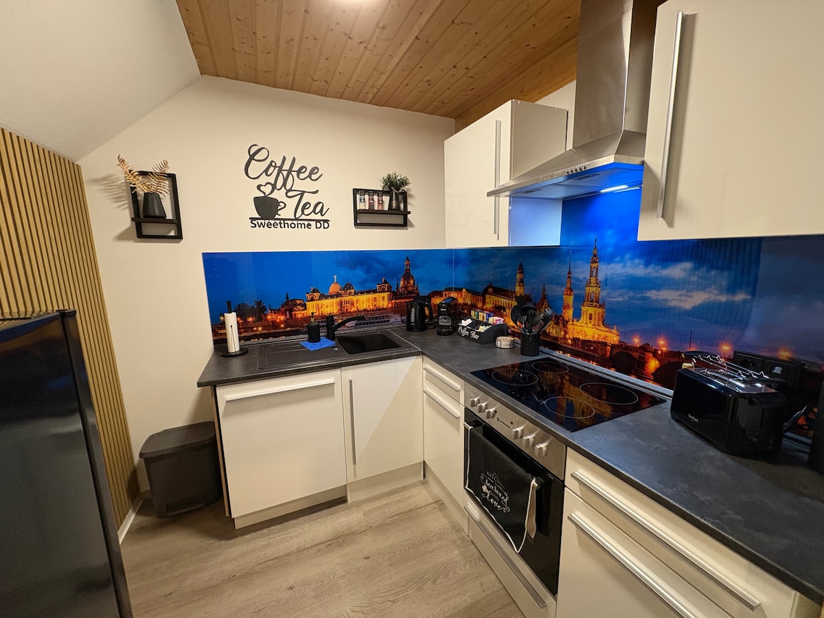 Najem je čudovito, svetlo predelano stanovanje v stanovanjski stavbi ob robu Dresdena v mirnem okrožju Dölzschen. Predelano stanovanje je sestavljeno iz odprte kuhinje z dnevno sobo, kopalnice s prho in straniščem, spalni prostor pa se nahaja nad dnevno sobo na vrhu strehe, do katere lahko pridete prek lestve z ograjo. V dnevni sobi je raztegljiv kavč, zato lahko v predelanem stanovanju bivajo 4 osebe (2 osebi v postelji v spalni sobi in 2 osebi na raztegljivem kavču).