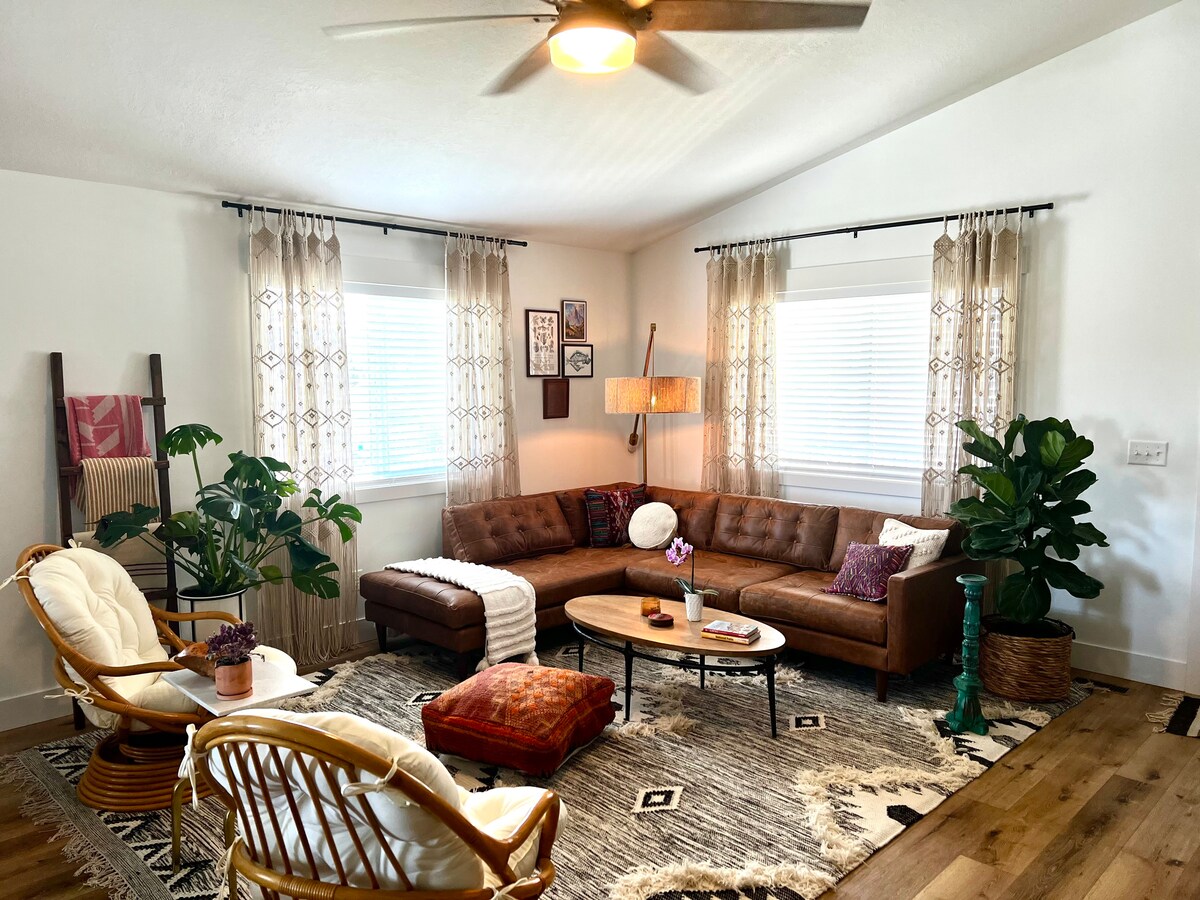 Dobrodošli v našem prostoru! To stanovanje je bilo zasnovano posebej za popotnike. Vse v prenočišču je popolnoma novo in brezhibno čisto. Založena je z vsem, kar potrebujete za sprostitev in uživanje. Pralni in sušilni stroj sta na voljo za uporabo. Leseni poudarki so bili pridobljeni z domačije v Bancroftu, ID. Moja žena in jaz upamo, da boste uživali v tem prostoru tako kot mi, kot smo ga zasnovali!