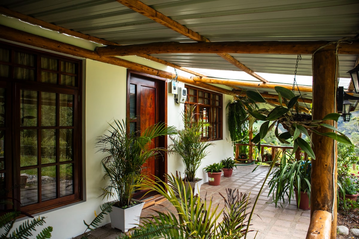 To je koča, ki se nahaja 7 minut od središča Bañosa,polna zelenih površin in vrtov ,orhidej in raznolikosti ptic, obdana z gorami in osupljivim razgledom na porečje reke Pastaza, edinstveno za počitek in družinsko sprostitev. Poleg tega se morajo povzpeti po 38 stopnicah cementa in rustikalnega kamna, na koncu pa bodo od zgoraj nagradili veličasten razgled na reko Pastaza in pred kratkim odprt bazen s toplo vodo.