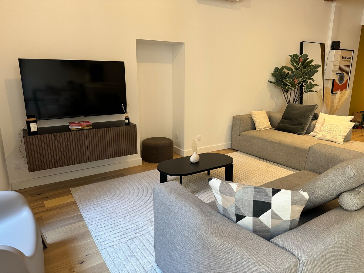 Luksuzno stanovanje, ki se nahaja na idealni lokaciji z balkonom in osupljivim razgledom na Palais de Justice de Chambery. Blizu vse opreme in prevoza (3 min) Sobotna jutranja tržnica tik pred stavbo. V celoti prenovljen, popolnoma opremljen, z vsem udobjem, ki je potrebno za prijetno bivanje ob vseh priložnostih. 15 minut od Lac du Bourget in 40 minut od Annecyja, pri vratih gora, da uživate v naravi. Najboljše prenočišče v Chambéryju!