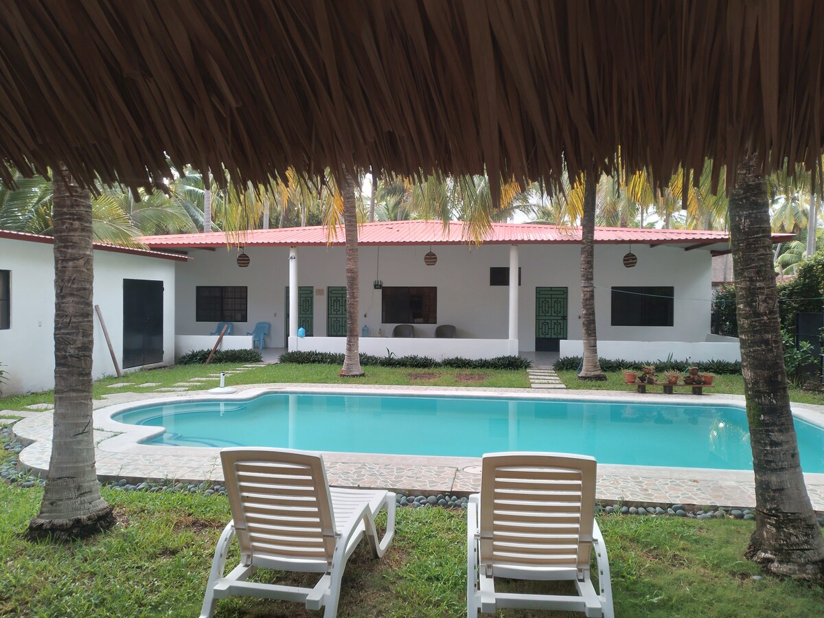 Dobrodošli v Mangomarju, udobnem zatočišču ob oceanu na prostorni posesti, ki se razprostira na 2000 kvadratnih metrih na čudoviti, malo znani plaži Sihuapilapa. Uživajte v velikem bazenu, baru na plaži, namiznem tenisu, otroškem igrišču in neposrednem dostopu do mirne in varne plaže. Hiša ponuja 4 spalnice s 4 kopalnicami, klimatsko napravo v vsaki sobi, WiFi, popolnoma opremljeno kuhinjo, sef, argentinski žar in okolju prijazne sončne kolektorje. Masaže in otroška posteljica so na voljo na zahtevo. Čaka vas oddih na skriti plaži. 🌴✨