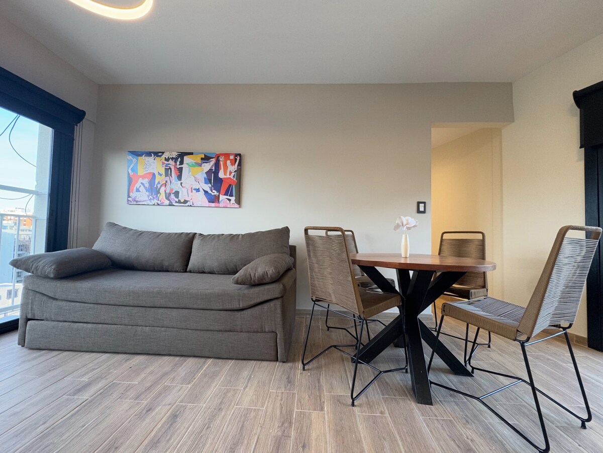 Čudovito stanovanje v visokem nadstropju. Nepremagljiv razgled na mesto Rio de la Plata in stadion River Plate. Idealno za 2 osebi, zakonska postelja. Popolnoma opremljena kuhinja. Električna pečica/štedilnik, hladilnik z zamrzovalnikom, mikrovalovna pečica, aparat za kavo, električni pločnik, opekač kruha. Klimatska naprava, pametna televizija, Wi-Fi. Kopalnica. Av Del Libertador, soseska Belgrano, z enostavnim dostopom do turističnih in delovnih točk. Gastronomska ponudba, supermarketi, ICBA, Fleni in zanimivosti nekaj ulic stran.