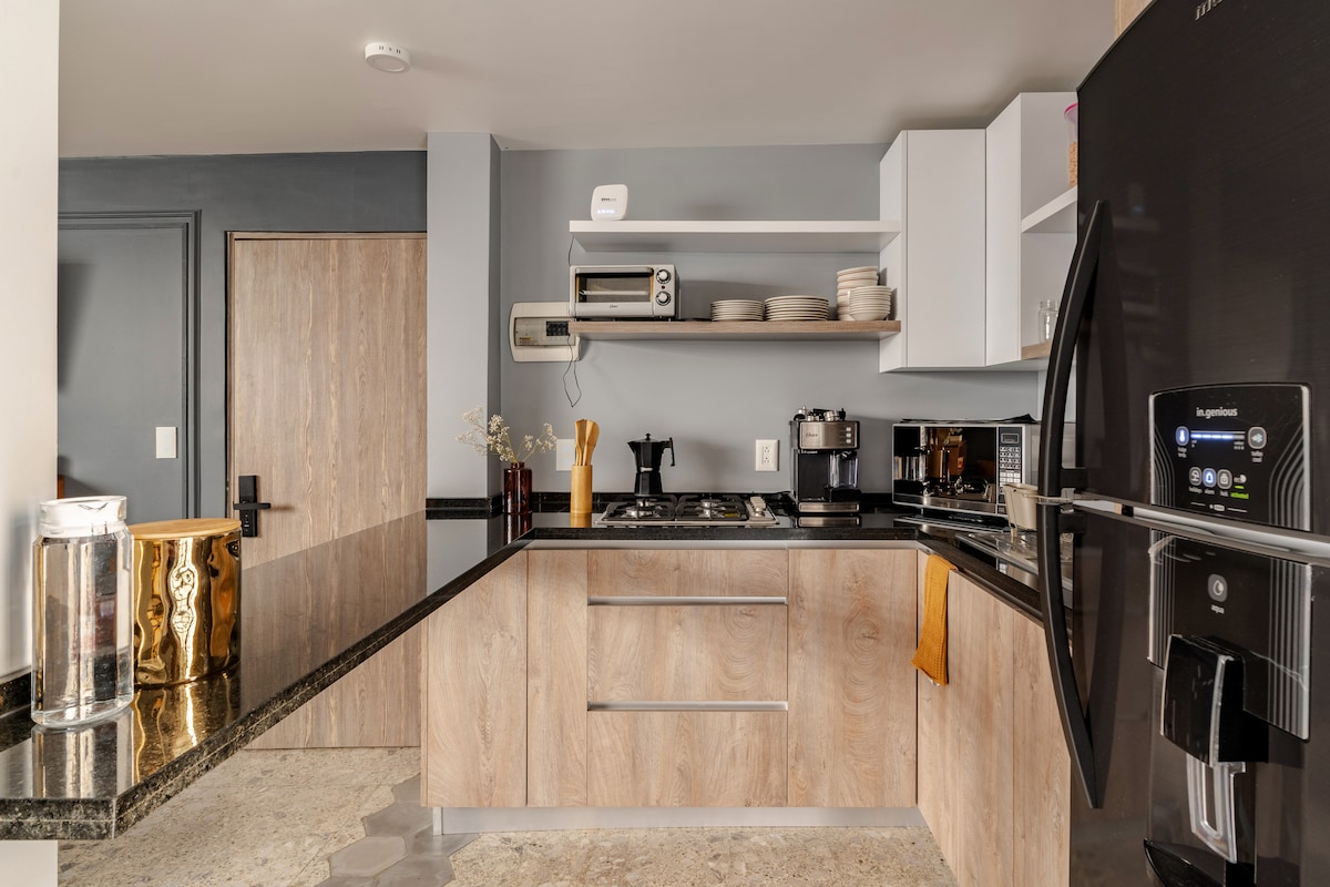Elegantno stanovanje v Roma Norteju ponuja popolno namestitev za digitalne nomade - hiter Wi-Fi, eleganten delovni prostor in stopnice od najbolj trendovskih kavarn, restavracij in nočnega življenja v Condesi. Uživajte v vrhunski opremi: poslovni center, telovadnica, igralnica in streha z osupljivim razgledom. Ostanite produktivni, bodite navdihnjeni in izkusite CDMX kot domačin.