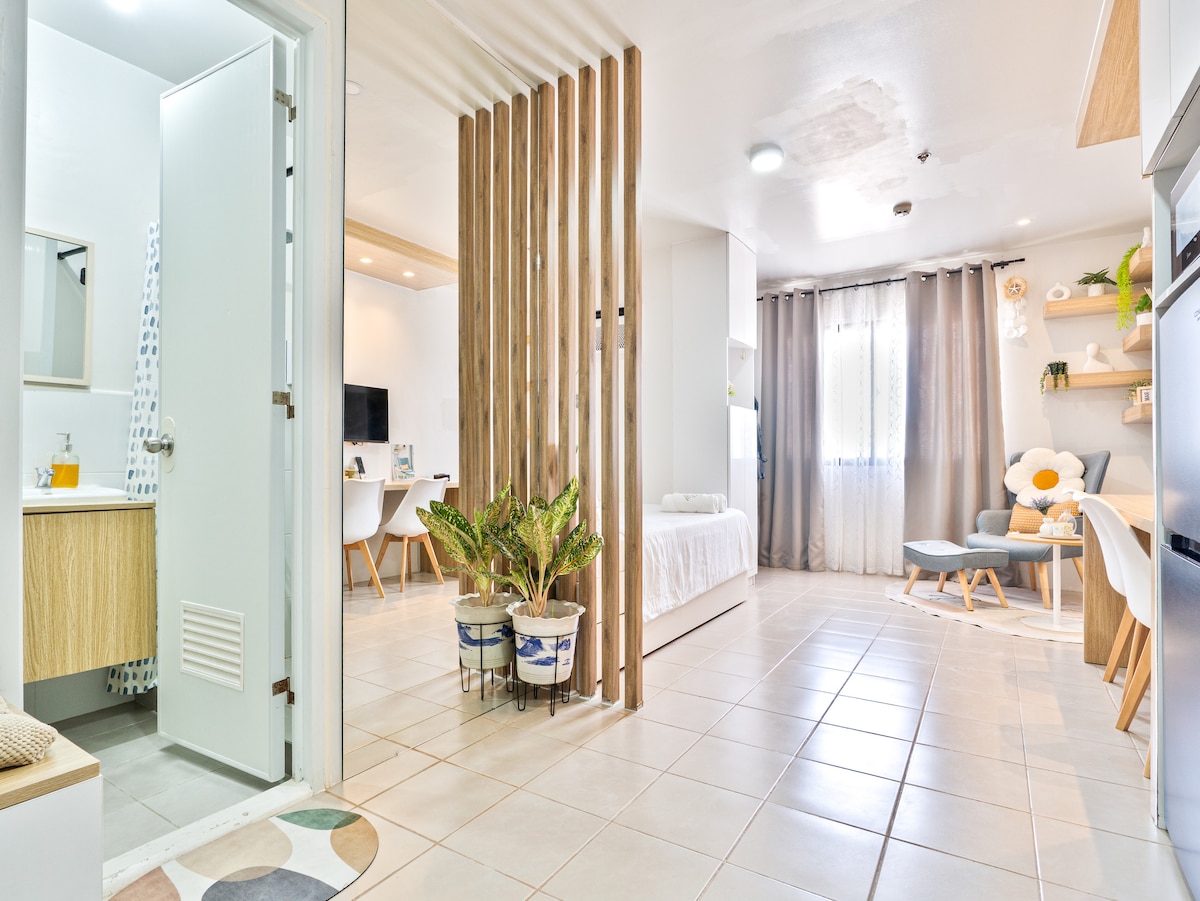 Create your most vibrant memories in our Terracotta inspired space with balcony facing the enigmatic pool. The place is close to CCLEX that will take you to the heart of Cebu City in no time. Your stay is literally minutes away from Airport , business centers, spa centers, markets, restaurants and beaches in Mactan. The room will give you a resort-living experience with a minimalist chic touch. You can cook in the kitchenette , use the washing machine and store goods in our full-sized fridge.