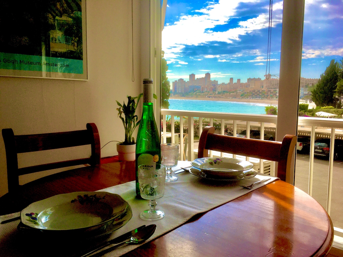 Precioso apartamento en primera línea de playa (salida directa al mar) con inmejorables vistas al mediterráneo. Ideal para parejas y familias con hijos. Prohibido fiestas y ruidos.Disponible para Largas Estancias. Consúltenos. Zona conectada con transporte público: TRAM y Autobuses con el centro ciudad. Todos los servicios: Restaurantes, Supermercados, Farmacia. Cuenta con una terraza frontal e impresionantes vistas al Castillo de Santa Bárbara; donde podrá relajarse observando las olas del Mar