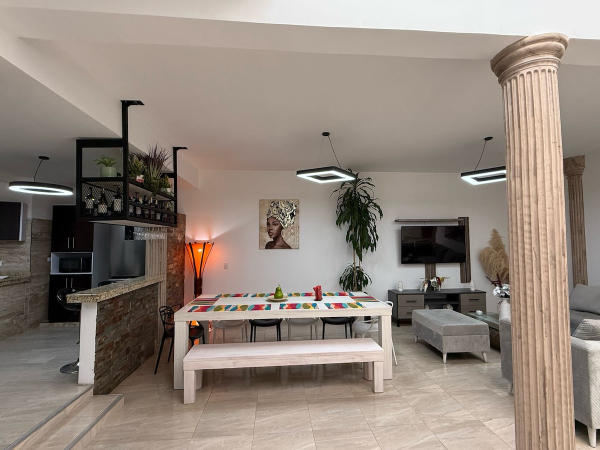 Ya sea para una escapada romántica, unas vacaciones en familia o un viaje con amigos este apartamento estilo americano es el lugar perfecto para desconectar y sentirte como en casa. Con espacios amplios, una cocina moderna abierta y una terraza para relajarte con juegos de mesa, cada detalle está pensado para tu comodidad. Disfruta de conexión a internet de 100 MB y espacio de oficina, aire acondicionado y una ubicación excelente cerca de restaurantes. ¿Listo para vivir una experiencia única?
