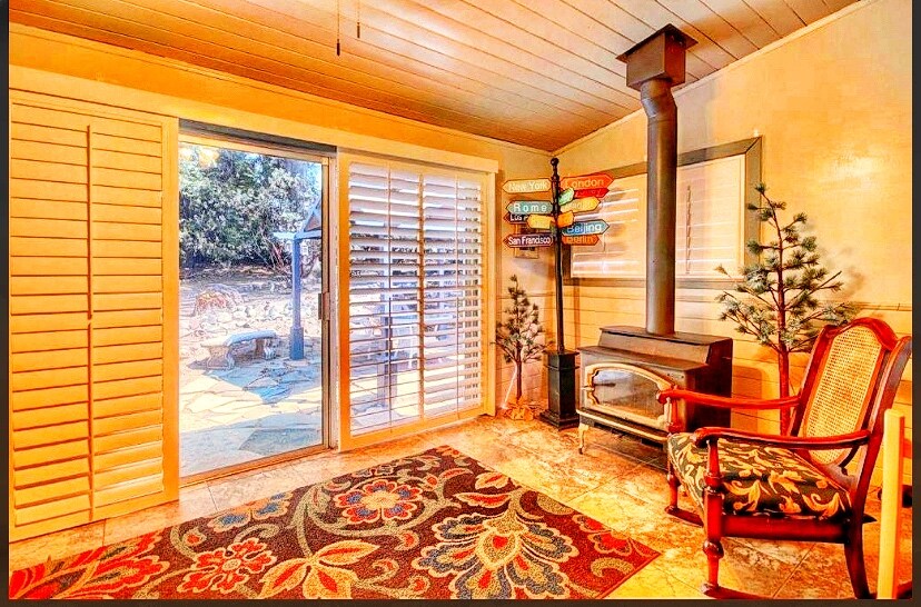 Evoking the chalets of Solvang, this gorgeous Oakhurst home is your gateway to Yosemite. This adorable, gingerbread-style home has been beautifully crafted from locally milled pine from nearby Bass Lake. Complete with a private sauna, this mountain fantasy is rich with soaring wood-beam ceilings and warm furnishings throughout, including a separate sun room, living area, and loft. Fireside ambiance abounds, with a huge fireplace in the living room and a wood-burning stove in the sunroom.