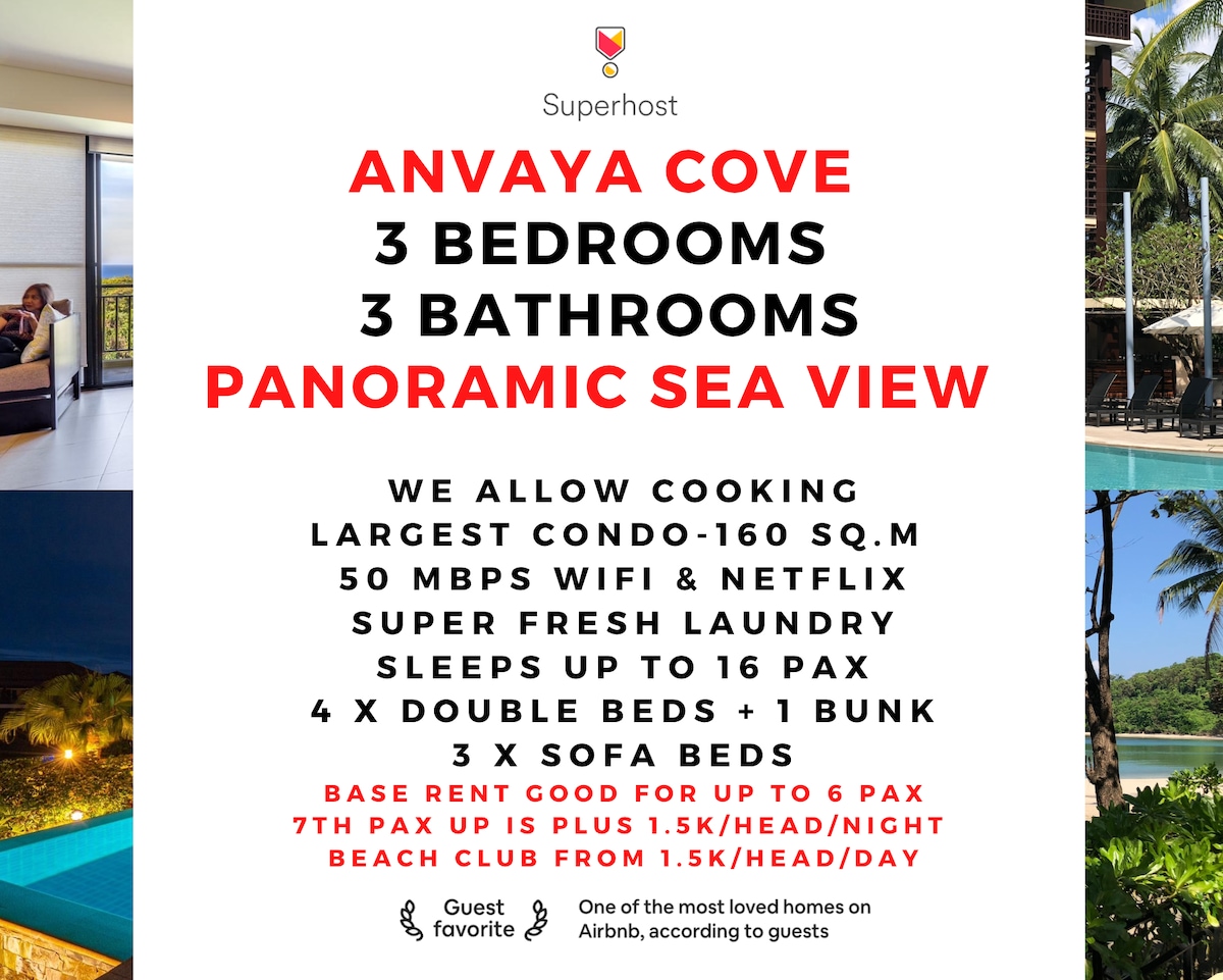 - Na voljo so brezplačne klubske vozovnice - povprašajte ob rezervaciji - Osnovna cena velja za 5 gostov. Dodatni gostje 1.250 na osebo do največ 10 - Eden najbolj osupljivih razgledov v Anvayi z odličnimi razgledi na igrišče za golf, ocean in gore z velikega balkona s pogledom na bazen - Spektakularni sončni zahodi in odličen kraj za sprostitev - Lastnik živi v Anvayi - brezplačen Wi-Fi in Netflix - Kuhanje je dovoljeno - mikrovalovna pečica, kuhalnik za riž, grelnik vode, opekač kruha, ref. in kuhinjska posoda, jedilni pribor itd. so vključeni