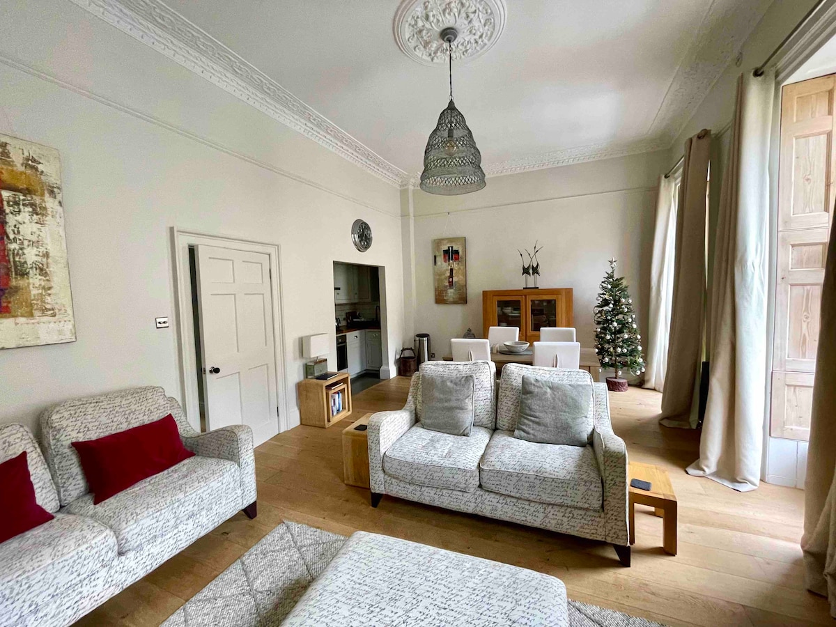 Svetlo, sodobno in udobno gruzijsko stanovanje s čudovitim razgledom na mestne vrtove in gruzijsko arhitekturo Bath. Uživajte v najboljšem iz obeh svetov - stanovanje je postavljeno le 5 minut hoje od središča Batha, vendar omogoča miren nočni spanec v zadnji spalnici, z dvojnimi vrati, da se boste počutili lepo in skrito! Opremljen je s sodobno tehnologijo, izjemno hitrimi širokopasovnimi vlakni in pred kratkim prenovljen z barvitimi umetninami in okraski. Najboljši finalist za nove gostitelje na☆ Airbnbju - 2022 ☆
