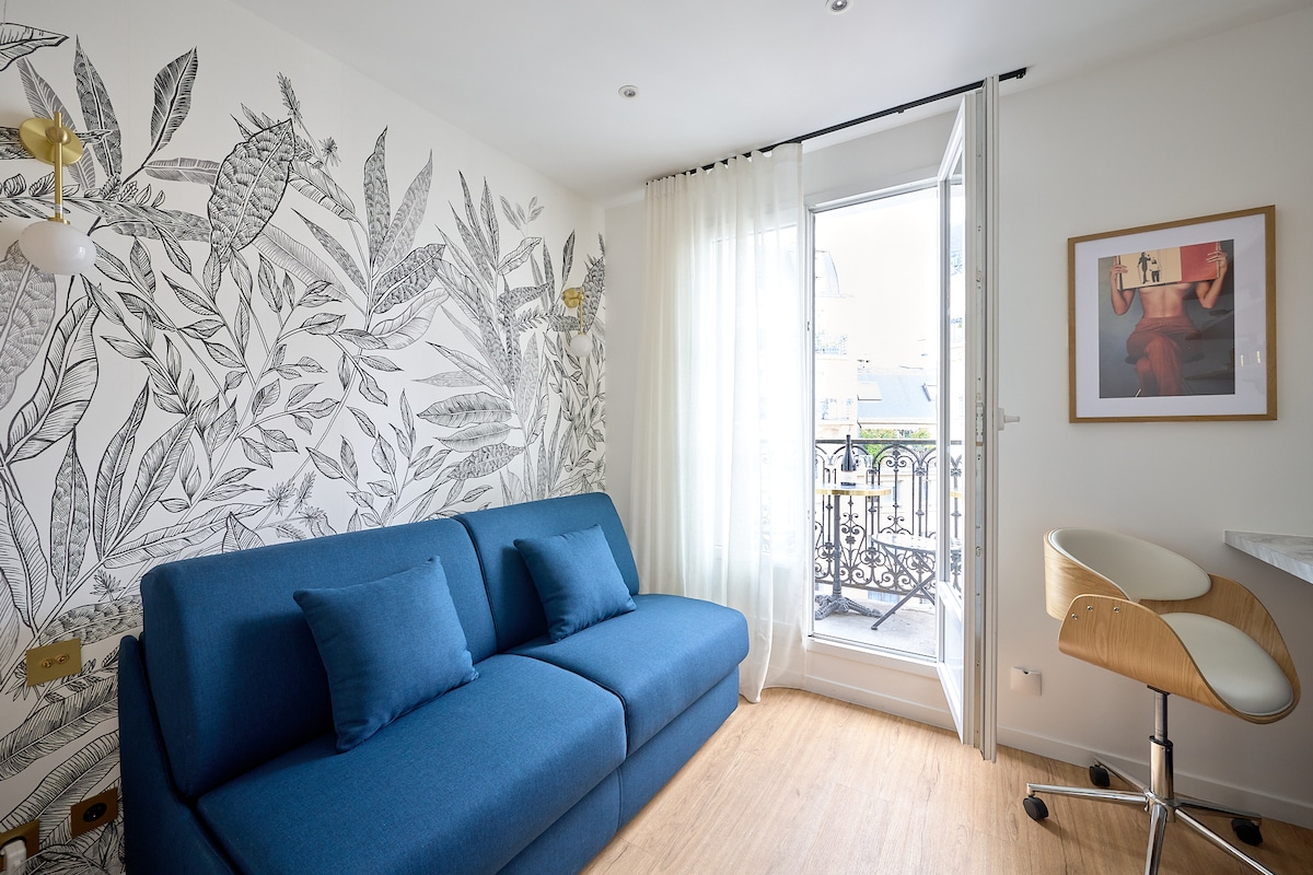 Luksuzno prenovljeno stanovanje v Parizu 17, med Monceaujem in Batignollesom. Svetel, tih in eleganten, z visokimi stropi, parketom iz ribje kosti in kakovostnimi zaključki. • zakonska postelja + raztegljiv kavč • popolnoma opremljena kuhinja z marmornim barom • italijanska prha Pravi butični hotelski občutek na priljubljenem območju. Idealno za pare, družine ali poslovna bivanja. Hitri Wi-Fi in pametna televizija sta vključena.