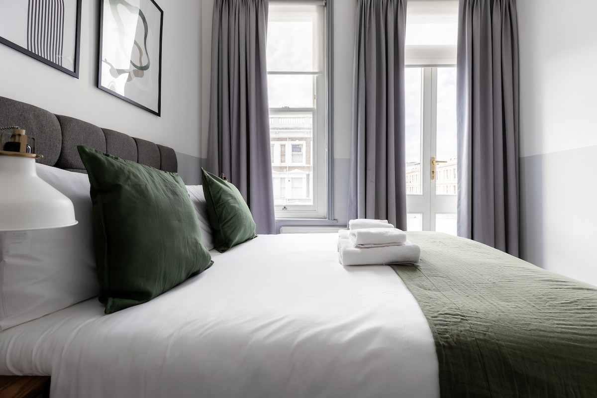 Sodobno, na novo prenovljeno in prostorno 1-sobno stanovanje, ki se nahaja na meji med Holland Parkom, Olympia in Kensingtonom, bo odlično izhodišče za vaše potovanje! Ima eno spalnico in vso opremo, ki je primerna za udobno bivanje. Stanovanje se nahaja v neposredni bližini nakupovalnega središča Westfield ter številnih barov in restavracij na tem območju. Bližnji avtobusi, Shepherd 's Bush (osrednja in podzemna linija) in postaje Olympia zagotavljajo hiter in enostaven dostop do mestnih znamenitosti in vročih točk.