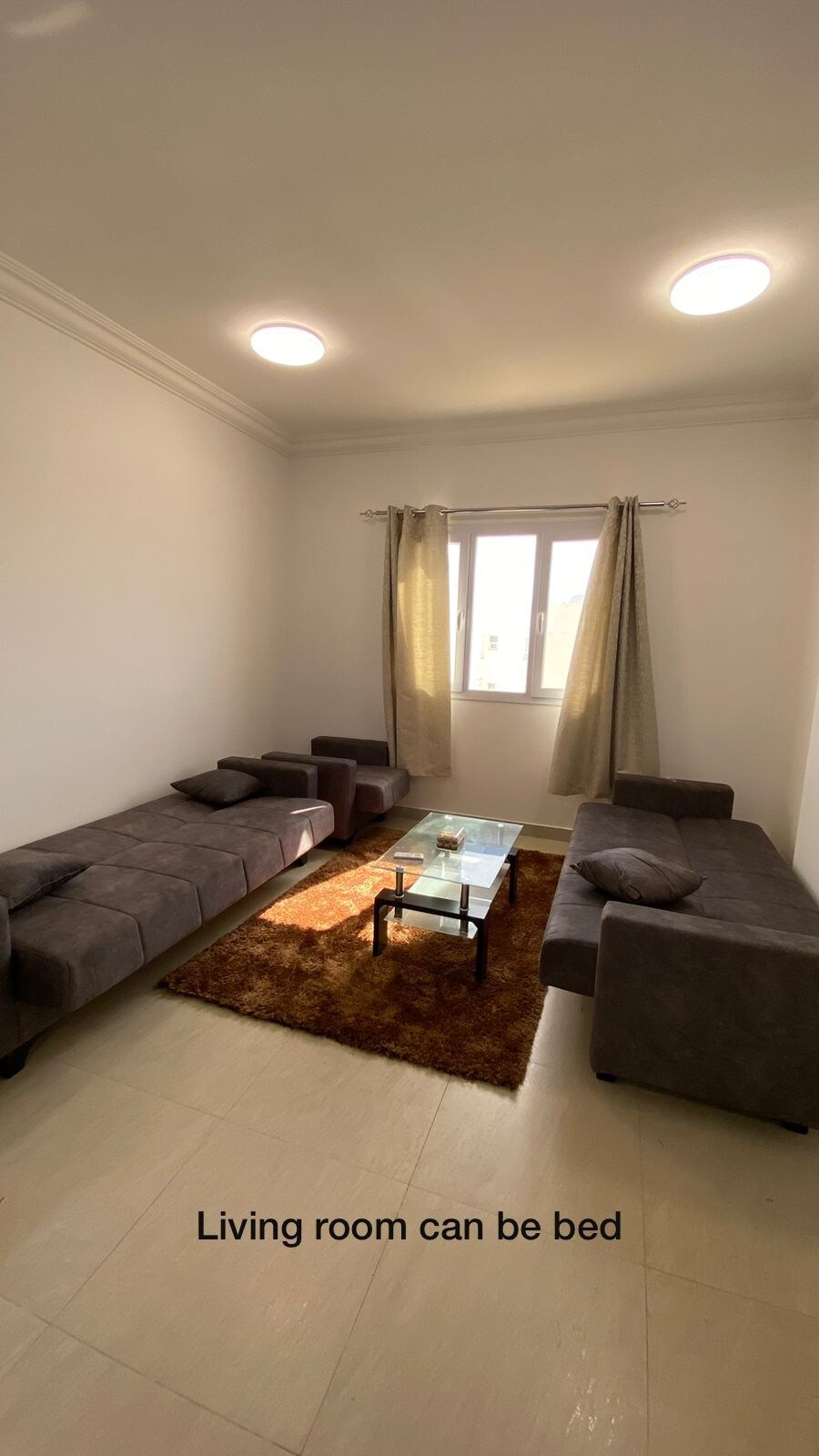 New 1 Bd flat with balcony, living area & 2 toilets.Nice furniture. Equipped with high speed WiFi, bed and dressing,sofa, 50 inch smart TV, satellite and free Netflix access, iron machine, hair dryer,vacuum cleaner, duct AC, ceiling with LED spot lights . You can enjoy the free swimming pool, gym & kids playground and BBQ cooking area. 5min drive from shopping malls, 15-20min from airport. 20min drive from beach, 20min drive from the old Market, next to sand dunes view.