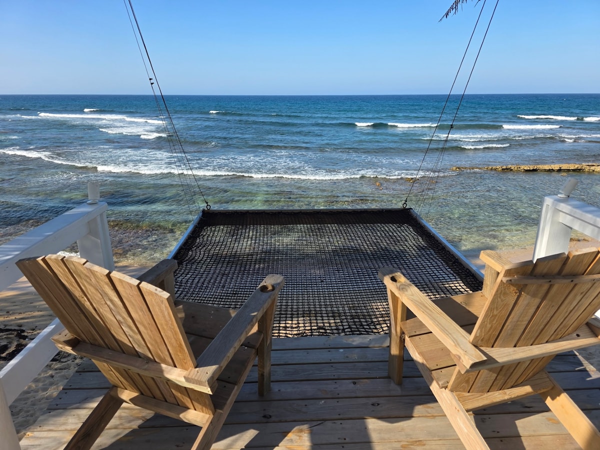 Gorgeous beachfront getaway with an infinity pool & ocean at your doorstep! Enjoy amazing 2 amazing terraces with stunning ocean views! Wake up to paradise! Enjoy your days on the amazing shared deck with an infinity pool overlooking the sea, sway in a cozy swing chair or simply lounge on the beach chairs and soak in the beauty of your surroundings. Bask in the sun, take a peaceful stroll along the shoreline, or unwind in the tranquility of this tropical retreat.