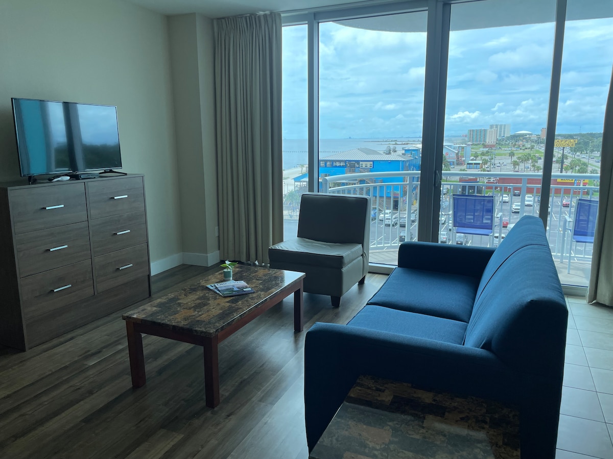 8. nadstropje 2 Spalnica, 2 kopalnici, ki se nahaja neposredno na plaži v Seabreezeju. Sprostite se na zasebnem balkonu s pogledom na čudovito zalivsko obalo. Televizorji z ravnim zaslonom, kabelska televizija, Wi-Fi v celoti. Glavna spalnica z veliko zakonsko posteljo, okni od tal do stropa s čudovitim pogledom na zaliv in spalnica z veliko masažno kadjo. 2. spalnica z zakonsko posteljo in kopalnico v spalnici. Popolnoma opremljena kuhinja, jedilnica in pralni/sušilni stroj v polni velikosti. Oprema morskega vetriča: 2 bazena ob plaži, fitnes center, savna in prostor za peko na žaru.