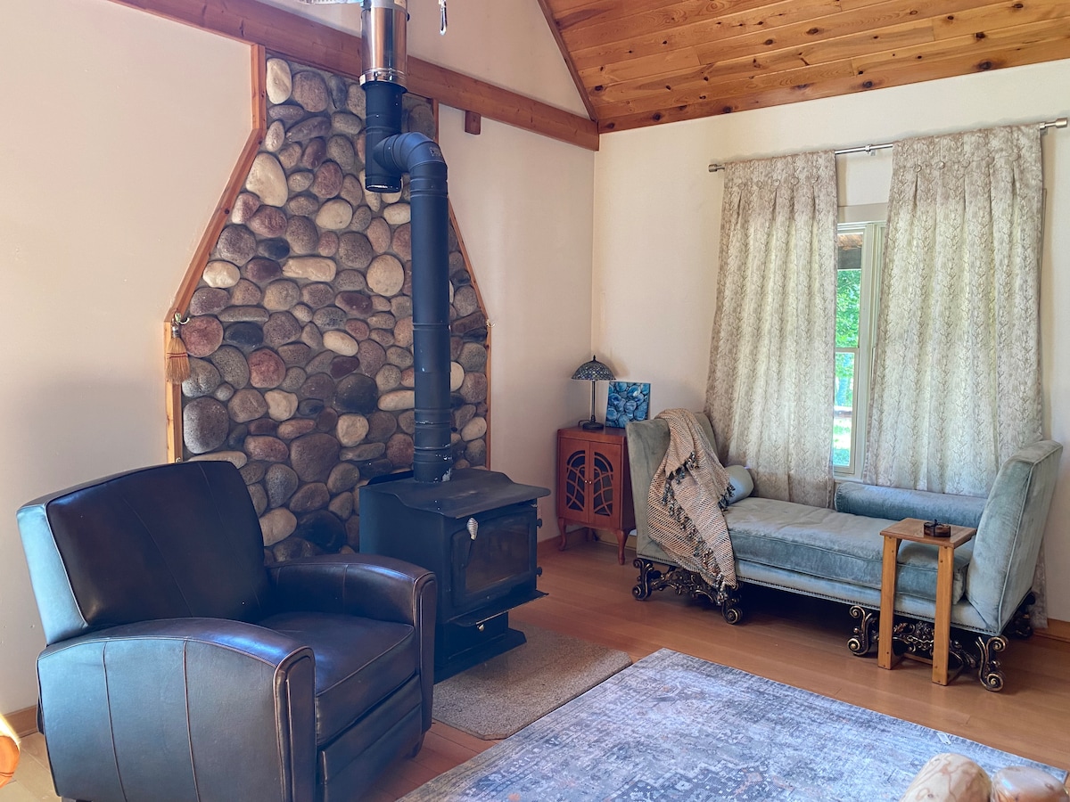 Koča za goste je pobarvana tako, da je podobna skandinavskemu umiku. Skupaj z ločeno spalnico, dodatno zložljivim kavčem, kuhinjsko nišo, štedilnikom na drva, Wi-Fi (najboljše, kar lahko najdemo, vendar ne odlično!!!) in veliko televizijo (DirecTV), je odličen oddih za par ali družino. Lastniki živijo v namestitvi, če karkoli potrebujete. Če ste nekoliko pustolovski, lahko postavimo šotor tik ob jezeru Superior. V celotni namestitvi ni dima. Za mirno bivanje brez motornih sani ali terenskih vozil.