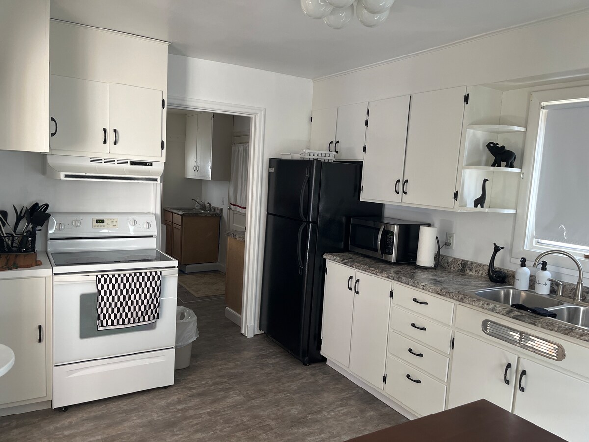 Nahaja se v osrčju središča mesta Dickinson, naše podstrešje je idealen kraj, kjer lahko svoj dom imenujete svoje prenočišče. Ne glede na to, ali ste v mestu, da obiščete prijatelje in družino ali pa potrebujete prostor za sprostitev po obisku Medore in Badlandov v Severni Dakoti, se lahko udobno namestite v našem dvosobnem podstrešju z dvema kopalnicama. Naše podstrešje ima tudi čudovito kuharsko kuhinjo, kjer lahko pripravite doma pripravljene obroke, če radi kuhate, ali pa ste peš oddaljeni od več odličnih prenočišč, če želite, da vam kdo pripravi kuhanje.