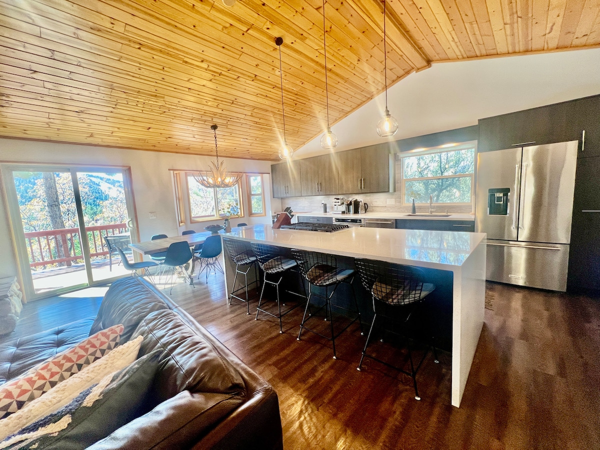 Nobena podrobnost ni bila spregledana v našem razkošnem gorskem prenočišču na 1/2 hektarja v Moonridgeu. Za 8 oseb. Uživajte v masažni kadi, kavi ali koktajlih na gugalnici na verandi, sedite za ognjišče ali zunanjo jedilnico, pecite na žaru ali pripravite palačinke na našem ogromnem žaru. Uporabite Peloton ali zasebno savno. Igrajte biljard, namizni nogomet, namizni tenis, pikado ali našo arkadno igro! Sprostite se na našem naslonjenem kavču, oglejte si filme ali igro. Jezero, smučišča, trgovine in restavracije v bližini, vendar morda ne želite zapustiti hiše!