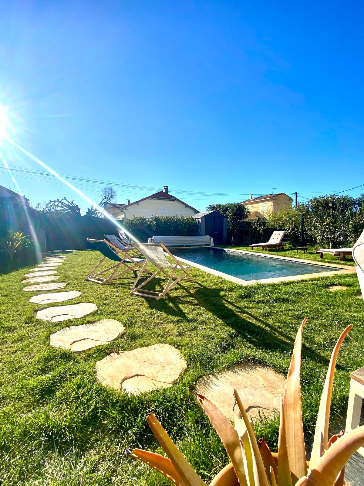 Welcome to Moonfall Villa Guest House, a heaven of peace right next to the heart of the city of Nimes. You are 5 - 8mnt away by car from the city center. Your private charming villa guest house has a separate entrance, fully equipped kitchen, two bedrooms - each room with its own bathroom and toilets, a patio with table and chairs so you can enjoy your meals outside. It overlooks a lush green garden. Besides your own private spaces, you can enjoy the swimming pool and garden of the villa.