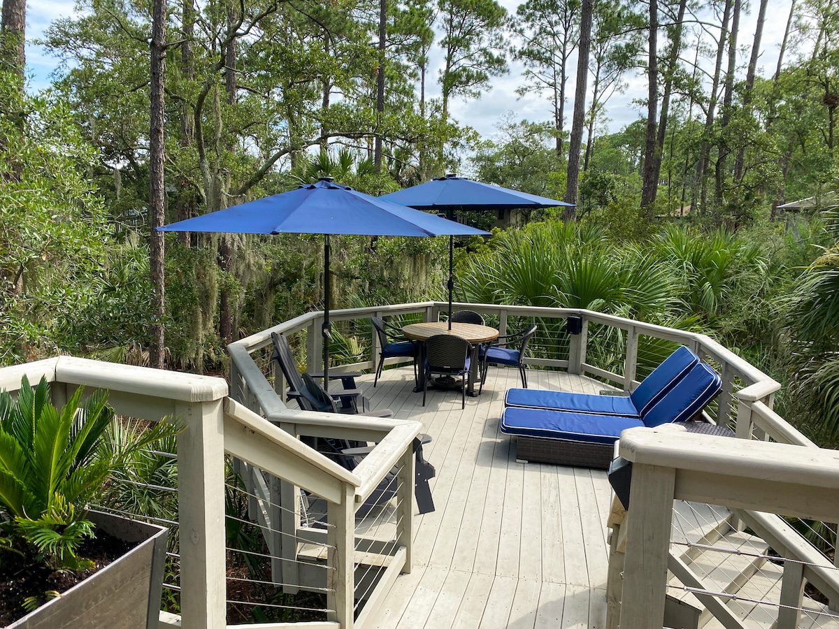 3 minute Walk to Harbour Town to climb the lighthouse, play on the playground, listen to live entertainment, shop, dine or enjoy water sports of all types. Swing your club at the Harbour Town Golf Links or your racket at the Sea Pines Racket Club, 200 yards from the treehouse! Tranquil Deer Island offers the relaxation of moss drapped oaks and free roaming friendly deer while being a walk or bike ride to lots of action! Sea Pines Beach Club welcomes you to comb 11 miles os sandy white shores!