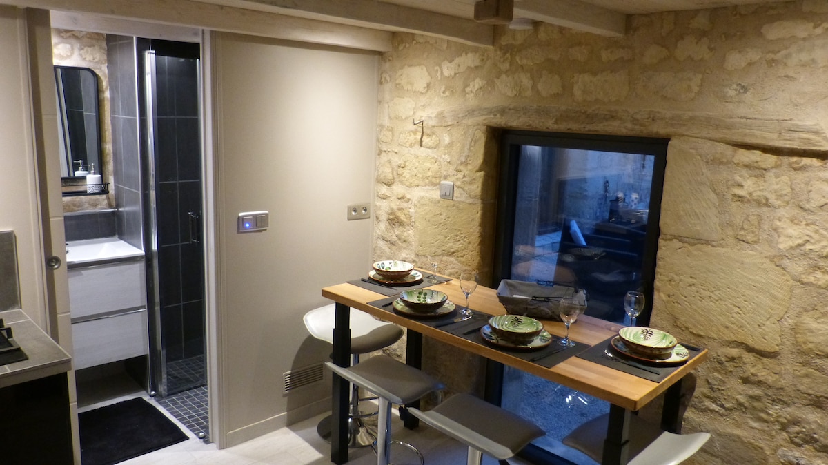 Nous vous accueillons avec plaisir dans cet ancien grenier réaménagé en 2023. Profitez des vieilles pierres, de la petite terrasse ensoleillée et du jardin semi-ombragé. "Le Grenier", studio de 20m² environ, vous propose une partie salon avec canapé, table haute, kitchenette équipée, un vrai lit (140x190), grande douche (140x80), WC séparés. Pensez à réserver nos bocaux repas, planche et petit déjeuner si besoin. Une petite pause au calme à la campagne !