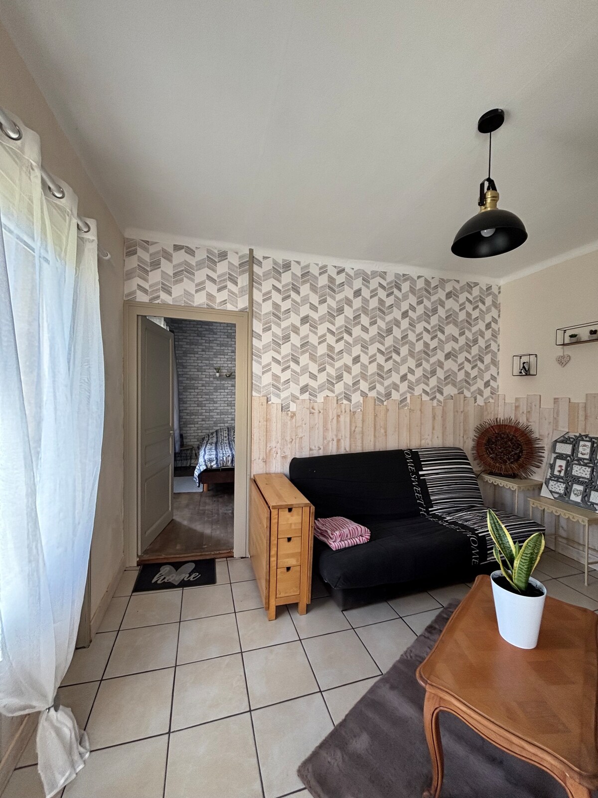 33 m2 garsonjera za 2 osebi 15 minut od futuroskopa. Popolnoma opremljena: indukcijska kuhalna plošča, zgornji hladilnik, električna pečica, mikrovalovna pečica, pomivalni stroj, pralni stroj. Postelja v 160. Wi-Fi. Kopalnica s prho. Ločeno stranišče. Majhna terasa z 1 mizo in 2 stoloma. Avtonomni vhod. V hiši Alberta in Julije boste sosedje lastnika in potencialnih sosedov. Oboje lahko najamete skupaj, komunicirate pa lahko od znotraj in od zunaj ( veranda).
