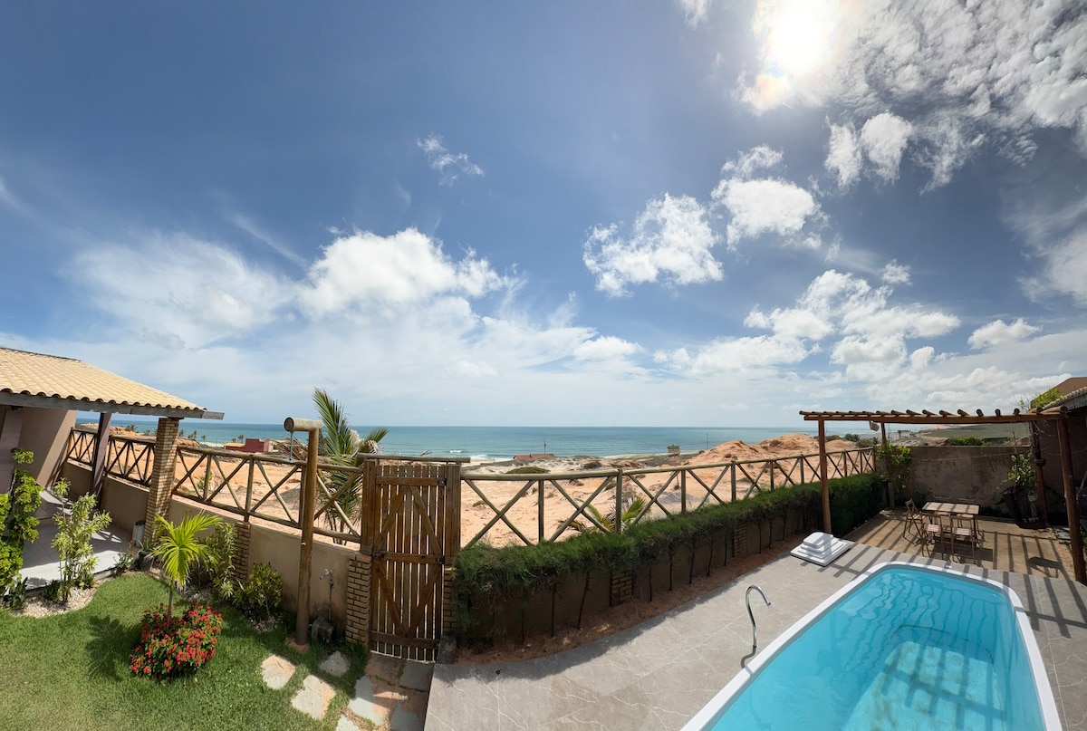 Um ótimo lugar para relaxar e pegar sol com vista mar! ☀️ A casa possui: Wi-Fi, 3 suítes, todas com cama de casal e espaço para rede. Cozinha com geladeira, fogão, bebedouro (gelagua) e louças (pratos, talheres, panelas, copos, garrafa térmica…). Deck para lazer com mesa para 12 pessoas, espaço para rede, área verde e psicina! Temos um caseiro disponível durante o horário comercial.