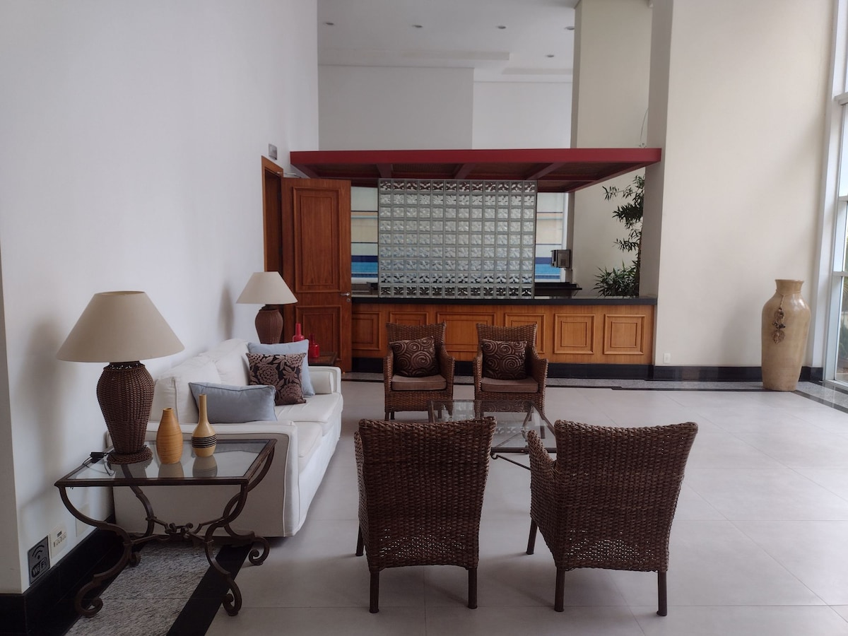Butični studio z enim najlepših razgledov na mesto São Paulo. Nahaja se 2 minuti hoje od podzemne železnice. Popolnoma opremljena kuhinja s hladilnikom, skritim z lesenimi vrati. Wi-Fi, klimatska naprava in pametni televizor 55 palcev. Samostojni vstop s pametno elektronsko ključavnico. Igrajte tenis ali pa pojdite v telovadnico in se sprostite v bazenih (na prostem ali v zaprtih prostorih), nato pa v savnah (mokrih ali suhih). Skupni prostor vključuje tudi skupne delovne prostore in pralnico. Obiskovalci morajo biti predhodno registrirani na sprednji destinaciji.