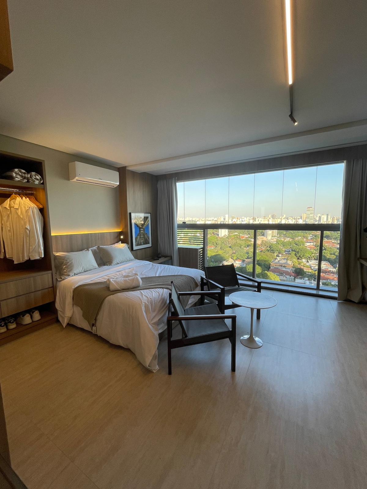 Dobrodošli in se počutite kot doma. Stanovanje je popolnoma novo, zasnovano posebej za vas in ima brezhibno dekoracijo, ki je zelo praktična za vsakdanje življenje. Razgled je spektakularen! Stanovanje se nahaja v 28. nadstropju. Nahajamo se na odlični lokaciji v São Paulu, v soseski Pinheiros, v bližini pa so restavracije, supermarketi in pekarne. Ima 40 m2 in ima 1 spalnico in 1 kopalnico. Od postaje podzemne železnice Fradique Coutinho vas loči peš (samo 2 ulici).