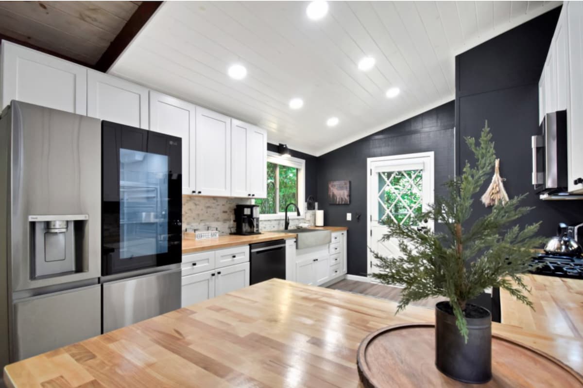 To je popolnoma nova stavba, ki je na voljo za vaš gorski oddih. Na voljo so 3 spalnice, 2 kopalnici in streha, polna sončnih kolektorjev. Hiša ima čudovita trda tla, betonske pulte, podzemne ploščice, naprave iz nerjavnega jekla in sodobno pohištvo. Gostje se bodo zaljubili v ograjo okoli verande in zvok potoka v ozadju. Vsa energija, ki se uporablja na kraju samem, se ustvarja čisto in obnovljivo. Za lastnike električnih vozil se ob pogonu nahaja vtičnica 50ampov za polnjenje.