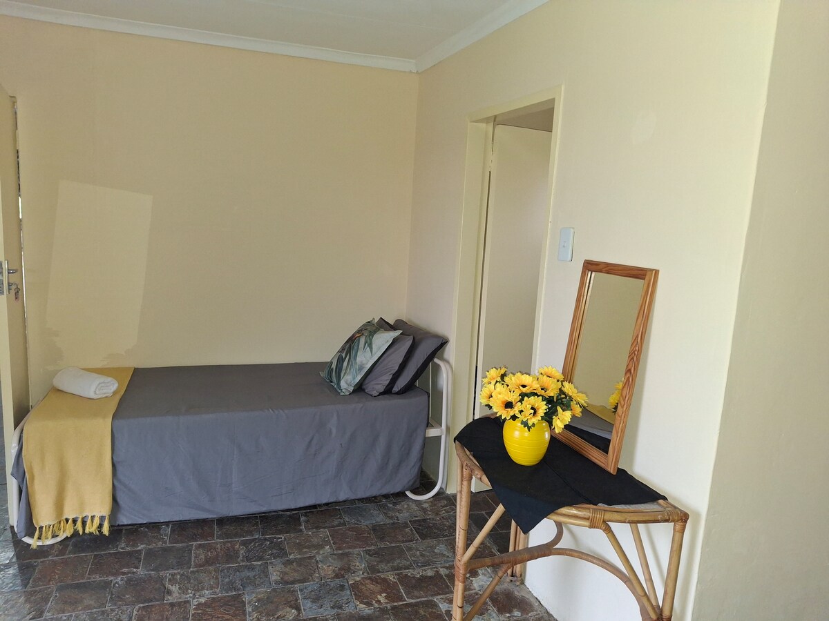 Ta koča z opremo za samostojno pripravo hrane lahko udobno sprejme do 10 gostov. Ponuja klimatizirane spalnice, opremljene s kopalnicami in prhami. Kuhinja je popolnoma opremljena z vrsto naprav. Dnevni prostor za zabavo vključuje TV z DSTV-jem. Gostje lahko uživajo v mirnem grmovju in osupljivem razgledu na bazen s terase. Sončni rezervni sistem je na voljo.