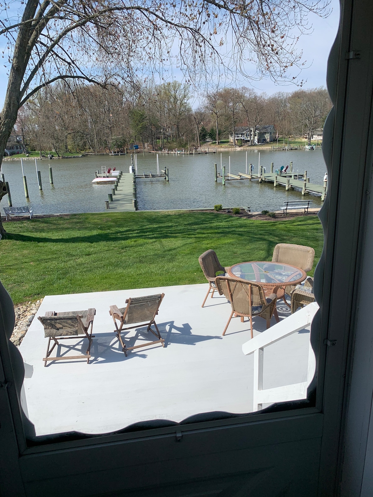 Uživajte v zasebnem stanovanju in terasi na vodi ali pa se usedite ob obali in opazujte Ospreje, čaplje, race in občasnega orla. Ribolov s pomola in morebitna majhna ladja, ki je na voljo. Nahajamo se v bližini golf kluba Rocky Point, jahtnega kluba Baltimore, 20 minut od Camden Yards in stadiona M&T. Nahajamo se 38 minut od BWI-ja. Imeli boste zasebno parkirišče v mirni varni soseski. Oprostite, hišni ljubljenčki niso dovoljeni.