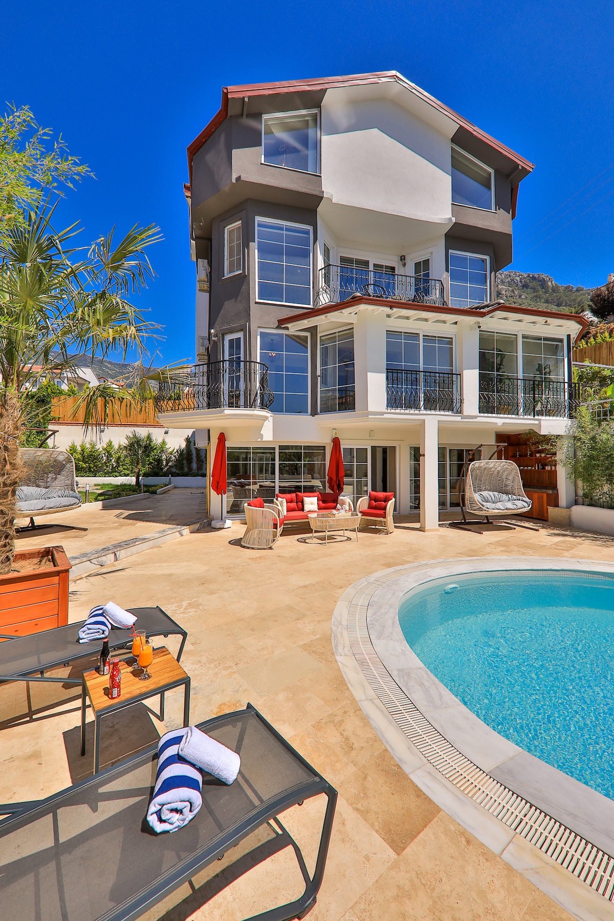 Naša vila ponuja luksuzno nastanitev za družine z otroki, skupine prijateljev, pare na medenih tednih. Lokacija se nahaja na najboljši lokaciji v kraju Fethiye. Prednost imajo mirne, tihe in mirne počitnice. Fethiye je zelo blizu kordona , bazarja Paspatur, plaže Calis. Zlahka dostopate do vseh znanih turističnih krajev. Do trgovine z živili, lekarne, telovadnice, bolnišnice , nakupovalnega središča lahko pridete v 5 minutah.