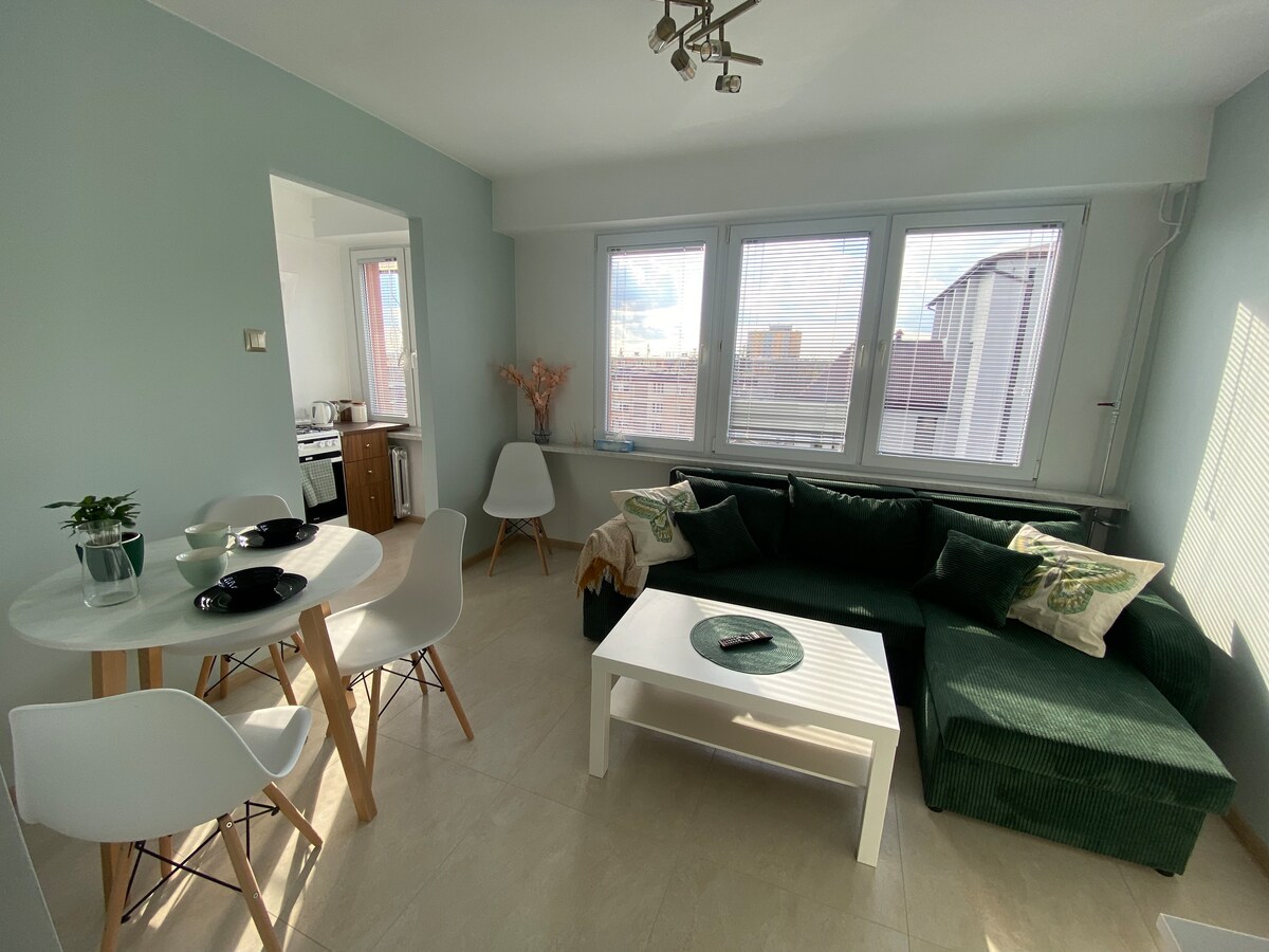 Popolno prenočišče z družino. Vabim vas, da najamete udobno stanovanje v velikosti 44 m2 v Bełchatówu. Stavba v bližini centra, ograjena s parkirnimi mesti. Blok ima dvigalo in dovoz za invalidske vozičke. Stanovanje je popolnoma opremljeno (hladilnik, mikrovalovna pečica, pečica, indukcijska kuhalna plošča, TV, WI-FI). Sestavljen je iz dveh ločenih sob. Ena zakonska postelja, druga pa dve enojni postelji. V stanovanju lahko bivajo do 4 osebe. Najkrajši čas zakupa je 3 nočitve