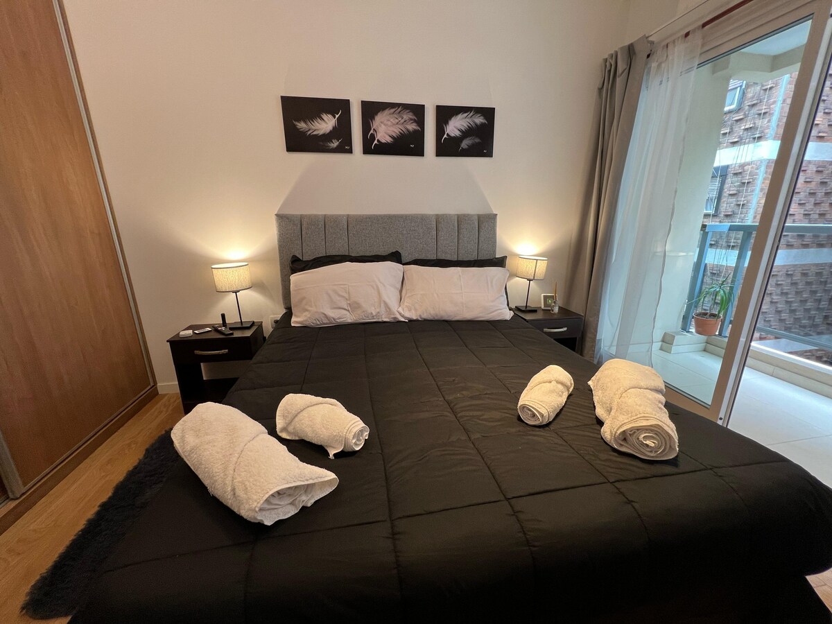 Prostorno in svetlo dvosobno stanovanje v Palermo Hollywoodu, v bližini barov in restavracij. Odlično za pare. Stanovanje ima klimatsko napravo tako v dnevni sobi kot v sobi, WI FI (300 Mb/s) in pametno televizijo s kabelsko televizijo. Stavba ima telovadnico, bazen, savno, VSOTO in ogrevan bazen. Lastnik je tudi pralnice v pritličju. Ni primerno za hišne ljubljenčke.
