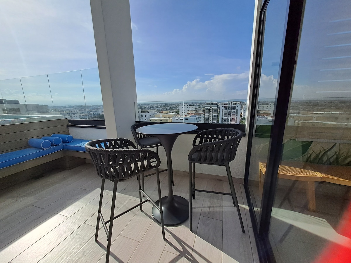 BRAND NEW LUXURY APART. in Downtown Bella Vista. 2 BEDS. 2 BATHS. 2 TV’s, POOL & LOUNGE AREA. GYM. PRIVATE BALCONY. PRIVATE PARKING. . DOOR MAN 24/7. Smart Lock Entry ✅ Laundry in Unit, Wifi, Cable & NETFLIX included, also Coffee & Bathroom Soap ✅ Building name: Tree Tower III. Close to Shopping Malls, Restaurants, Supermarkets, Movie Theaters. One of the best and most safe areas of beautiful Santo Domingo. 30 min Drive to Airport Las Americas. 20 Min drive to the beautiful Colonial Zone.