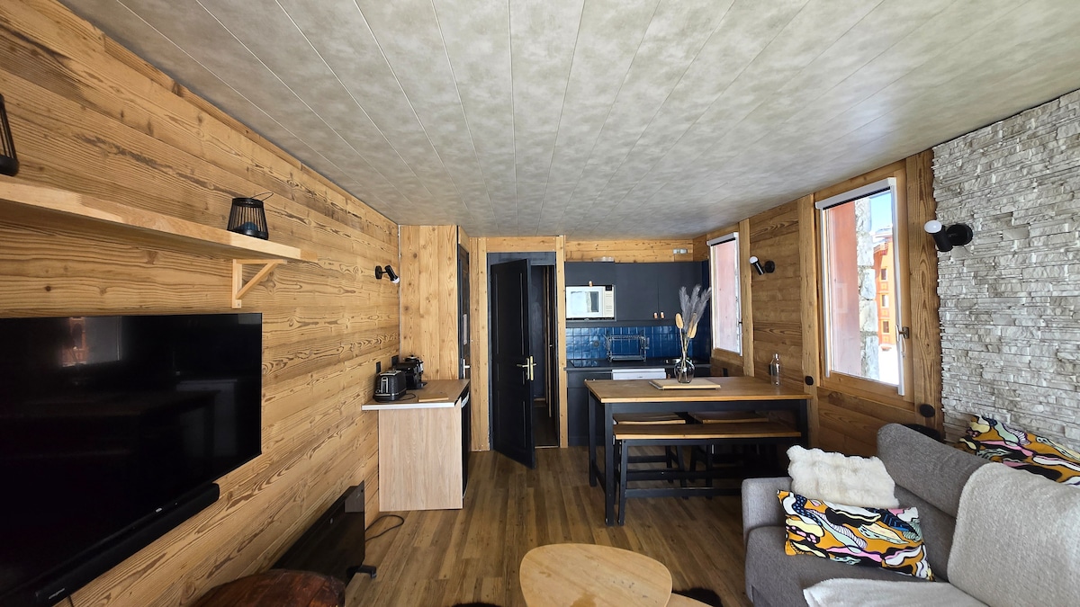 Prostorno stanovanje v velikosti 58 m², popolnoma prenovljeno, idealno za 8 oseb. Nahajate se v stanovanju 3000, ob vznožju smučišča. Nadenite si smuči in se odpravite naravnost na teraso, ki je obrnjena proti jugu, da uživate v kavi na soncu na naših ležalnikih. ⛷️Neposreden dostop do smučišča – smučajte do terase! 🌞Velika sončna terasa z neoviranim razgledom in ležalniki 🛜Wi-Fi je vključen, da ostanete povezani 🏠Nastanitev v osrčju letovišča: trgovine, šola smučanja, bazen, spa in restavracije so v hoje