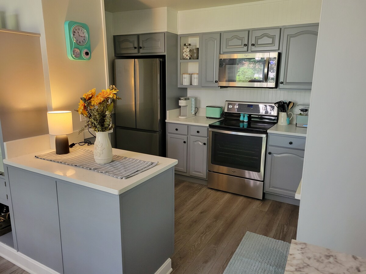 Uživajte v našem 3-nadstropnem prenočišču v Bellefonteju in preverite, zakaj je bilo naše mesto ocenjeno kot eno od 10 najbolj očarljivih mest v Pensilvaniji! Če iščete udobno prenočišče za obiske, dogodke ali praznike, vam bo naša hiša všeč! Je dobro urejen in lepo prenovljen. Ponaša se s 5 spalnicami in 3,5 kopalnicami, do Bobra pa je le 14 minut Stadion! Preprosto ga je najti, blizu vsega, kar potrebujete, s 4 namenskimi parkirnimi mesti v osrčju Happy Valleyja. Oglejte si naš vodnik