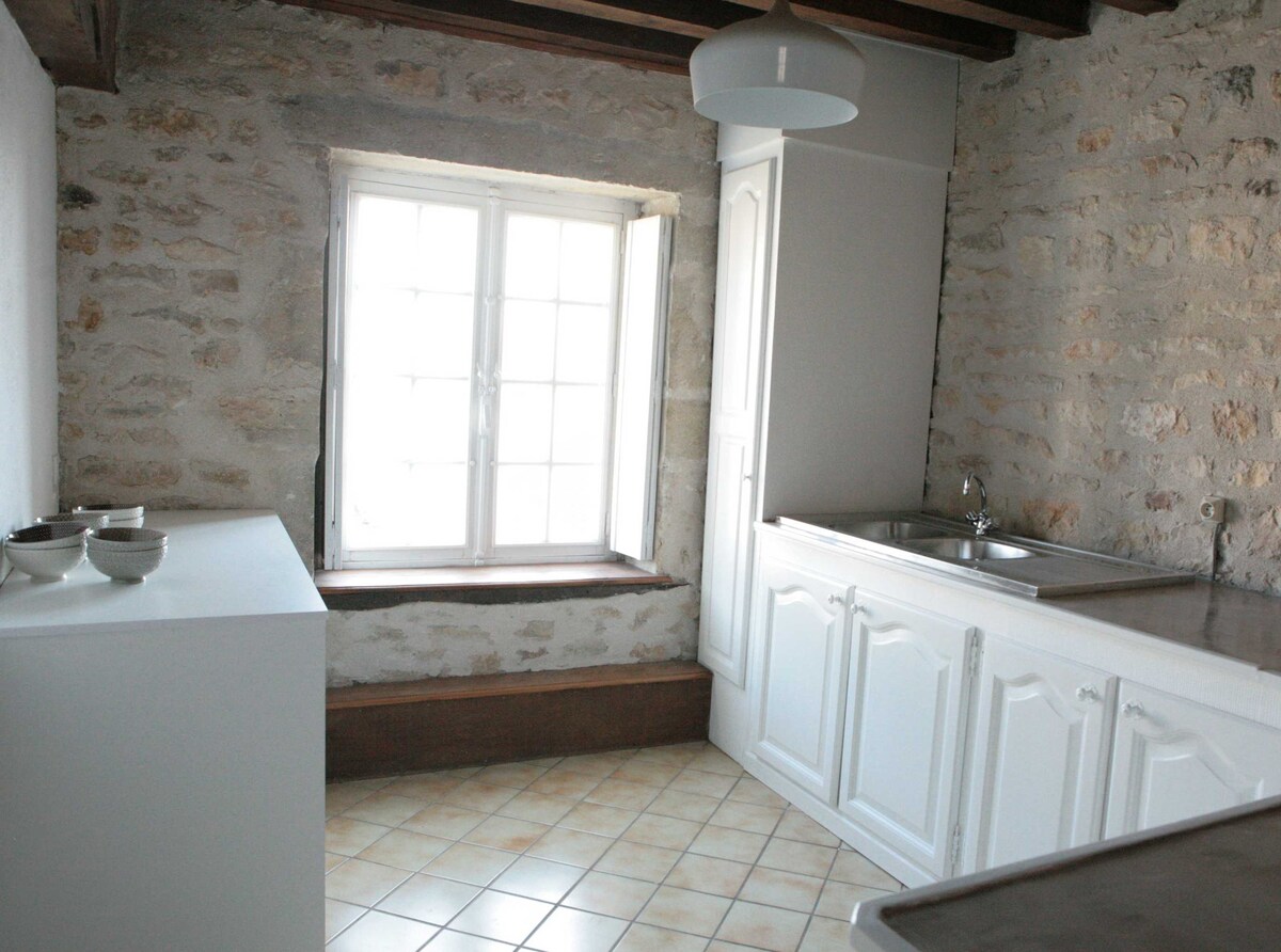 Stanovanje velikosti 90 m2 v pritličju v središču mesta Dijon, v starinskem okrožju, v bližini znamenite »sove« Dijona in palače vojvod Burgundije, v mirni ulici brez trgovine ali bara z majhnim prehodom. Zasebni vhod. Zasebno dvorišče z jedilnico. Obokana klet za degustacijo burgundskega vina; pikado; z zvočnikom Bluetooth.