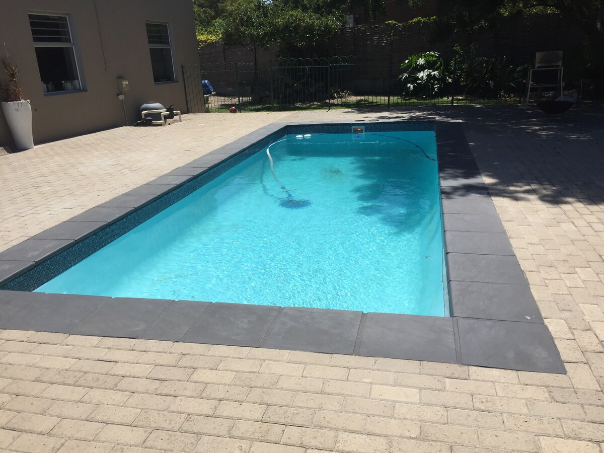 Udobno in domače stanovanje se nahaja na velikem dobro uveljavljenem vrtu s skupnim bazenom (pokritim v zimskih mesecih, junija in julija ), varno parkirišče za 2 vozili za vrati. Blizu središča vasi Durbanville. 2 minuti vožnje od medicinske klinike Durbanville 10 minut od medicinske klinike Cape Gate. Nakupovalno središče in nakupovalno središče Cape Gate je oddaljeno 10 km. Okoliške vinske kmetije so Diemersdal, Meerendal, Maastricht. 35 minut do Stellenboscha in V&A.